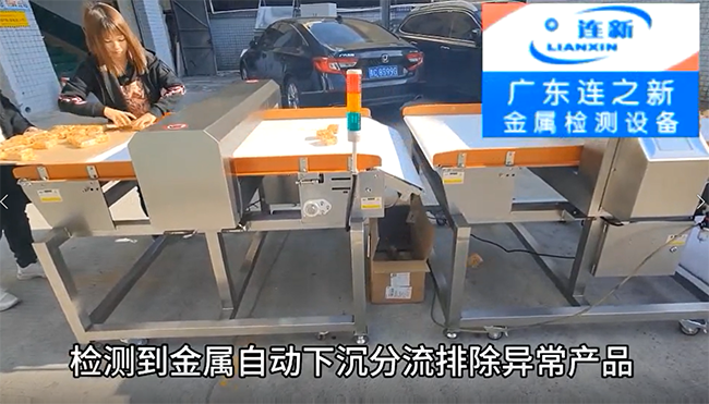 下沉剔除式食品類金屬檢測機(jī)使用現(xiàn)場視頻: